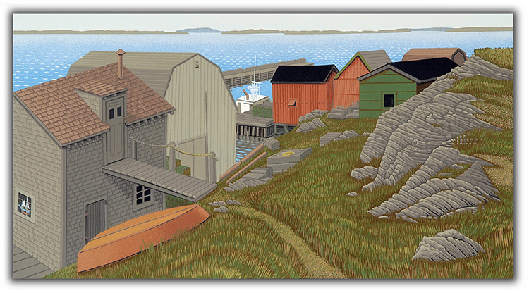 | Blue Rocks Sheds - Blue Rocks, Nova Scotia Hand Printed Silkscreen |