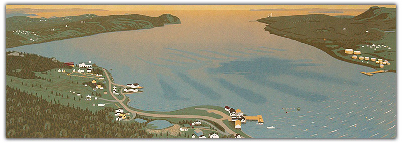 | Holyrood, Newfoundland Hand Printed Silkscreen Size 10" x 23" |