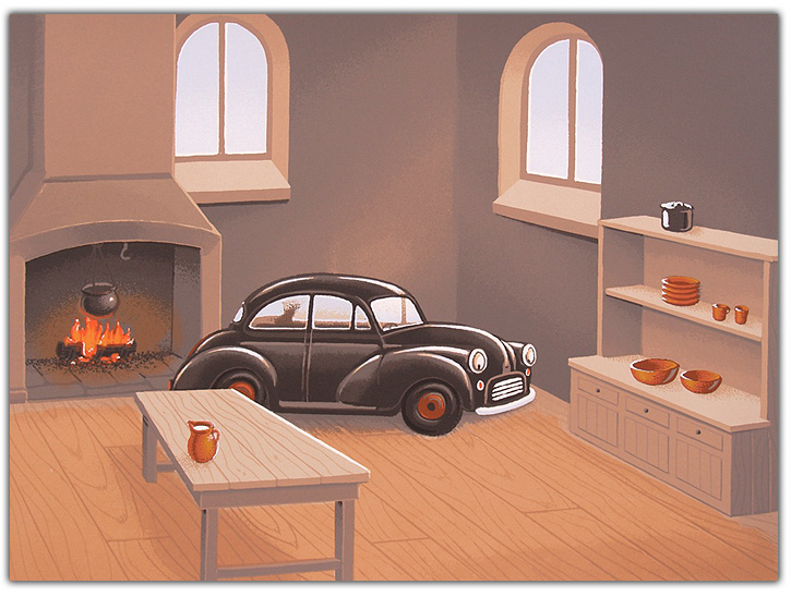| Morris in the Kitchen Hand Printed Silkscreen The popular and industrious car. Size 8 x 12" $220 |